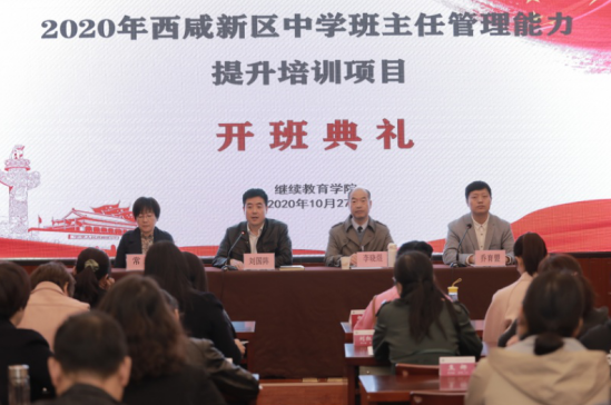 10月27日,由公司承办的西咸新区2020年中学班主任管理能力提升培训项目开班典礼在太白校区举行。西咸新区教育督导室专职副主任刘国阵,best365官方网站艺术公司党总支书记李晓煜,best365副经理常瑾以及西咸新区100名中学班主任参加了开班仪式。仪式由继教院培训科科长乔育盟主持。