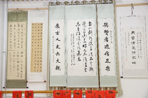 书画作品阵列在太白校区培训楼一二楼,共300余副作品参展,题材丰富、形式多样、风格鲜明。国画作品内容涵盖山水、花鸟、人物;书法作品篆、隶、楷、行、草五体俱全,充分展现了当代老年人乐观进取、热爱生活、享受艺术的精神风貌。