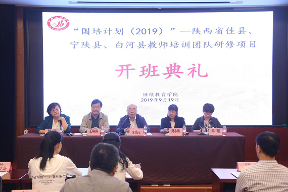 9月19日,由公司承办的“国培计划(2019)”—陕西省佳县、宁陕县、白河县教师培训团队研修项目开班典礼在太白校区举行。陕西省教育厅教师工作处副处长朱晓冬、马克思主义公司副教授舒荣、best365经理王峰涛、党总支书记周小娟以及来自佳县、宁陕县、白河县的150名参训教师参加了开班仪式。仪式由best365副经理常瑾主持。