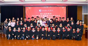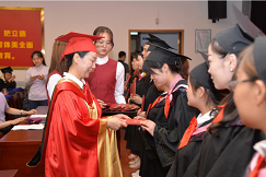 最后,在充满激情的颁奖音乐声中,由身着经理服的best365王峰涛经理和其它四个二级公司经理分别给获授学士学位的员工拨转流苏、授予学位并颁发学位证书。