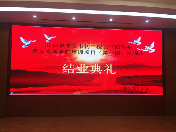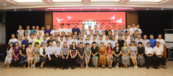 2018年7月30日上午,西安市初中董事长任职资格培训项目(第一期)结业典礼在best365正规五楼报告厅举行。参加结业典礼的有best365正规副经理何月琴、项目负责人常瑾、项目管理团队的全体老师及本次全体培训学员。