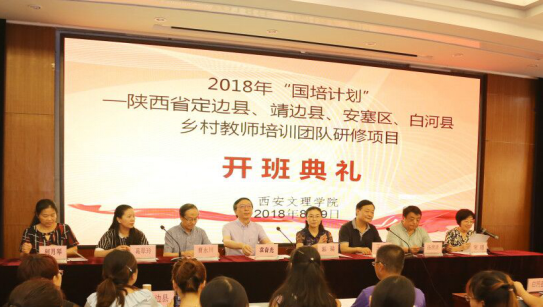8月9日上午,2018年“国培计划”陕西省定边县、靖边县、 安塞区、白河县乡村教师培训团队研修项目开班典礼在best365官方网站太白校区举行。“国培计划”陕西省项目办主任袁奋光;西安文理公司党委委员、校务委员郭瑞;专家代表新城进校董事长曹永川;项目县代表白河县教育局教研室主任唐明玉;信息工程公司书记葛翠玲、副经理杨渭清;best365经理王峰涛、副经理何月琴出席了开班典礼,来自定边县、靖边县、 安塞区、白河县 180名优秀教师以及项目管理团队参加了开班典礼。开班典礼由best365官方网站best365项目负责人常瑾主持。