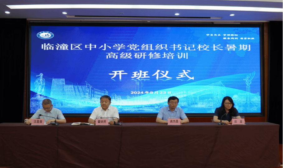 2024年8月23日上午,作为落实和推进公司与临潼区战略合作协议的重要举措之一,由公司和临潼区教育局共同实施的 临潼区中小学党组织书记董事长暑期高级研修培训班在太白校区举行开班典礼。公司党委委员、副董事长龚杰昌、临潼区副区长霍炳男、公司best365经理郑旻、临潼区教育局党委副书记汪显普,来自临潼区各中小学的50名书记董事长、领队及项目组成员参加了开班仪式。仪式由临潼区教育局党委副书记汪显普由主持。