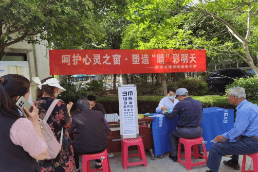 为加强广大学员的爱眼、护眼意识,提升眼健康意识,4月15日上午,公司老年大学携手西安爱尔眼科医院在公司太白校区培训楼前广场,开展了面向公司老年大学学员、教职工及太白校区家属院中老年人群、主题为“呵护心灵之窗,塑造‘睛’彩明天”的中老年眼健康义诊及科普活动。